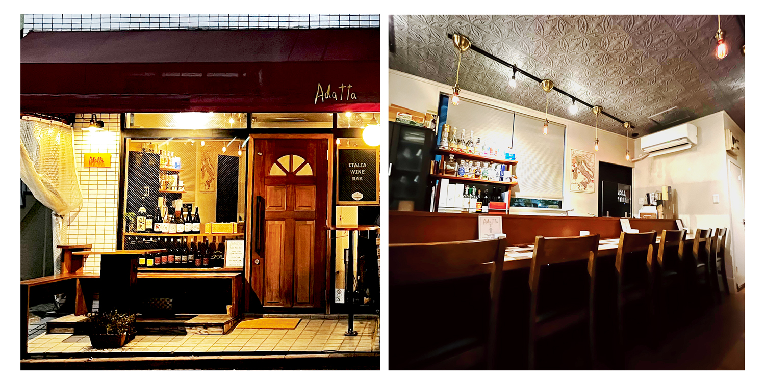 Adattaはオーナーの小林氏が営業されているイタリアワイン専門のワインバーです。元々はエスプレッソが好きでイタリアに興味をもち、イタリア語を勉強するためにイタリアンレストランで働いたところ、サービスやワインの面白さに気づき、2019年に馬込で開業をされました。